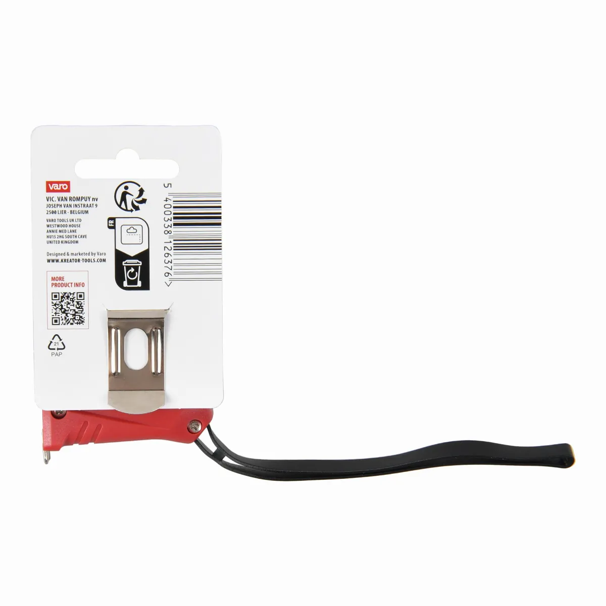 - Pokud potřebujete mít volné ruce, můžete si metr snadno připevnit na opasek díky klipu na opasek.