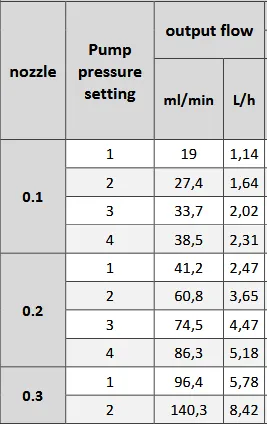 - Tryska o průměru 0.1 mm umožňující aplikaci nejmenších částic. Tato tryska je standardní součástí stroje.