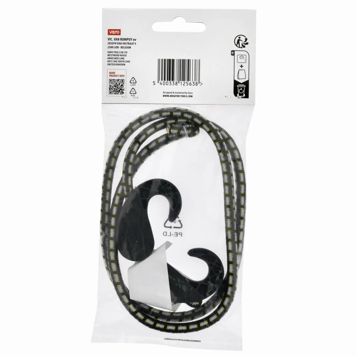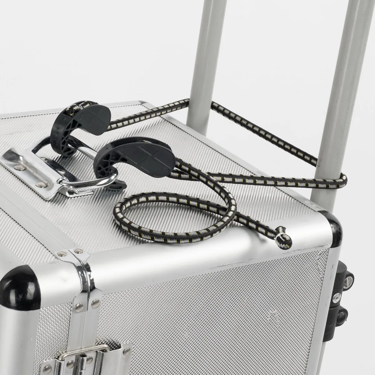- Tento gumový popruh na přepravu je vybaven nastavitelnými kovovými háčky.