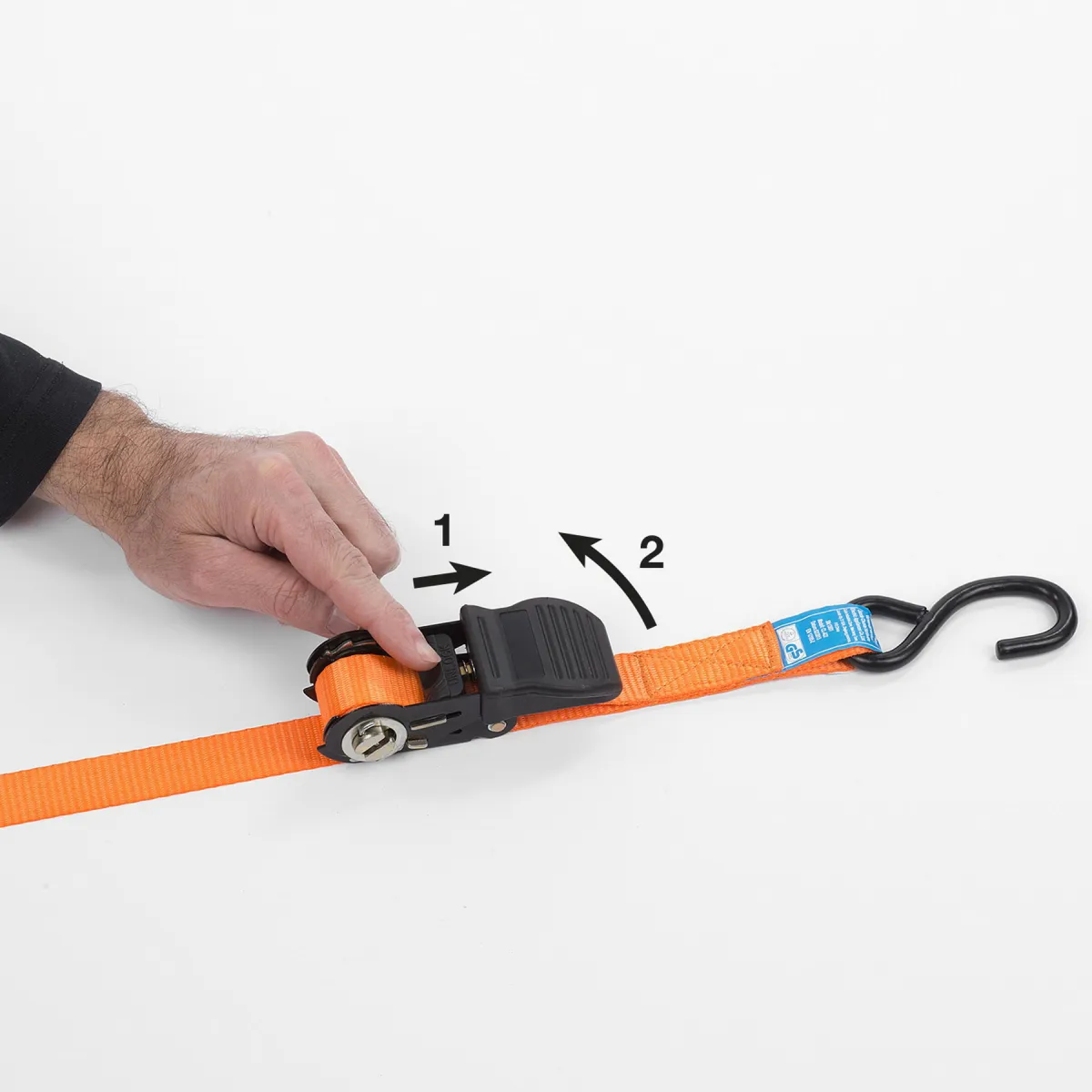 - Upevňovací popruh zvládne hmotnost až 225 kg, je dlouhý 4,5 m a široký 25 mm.