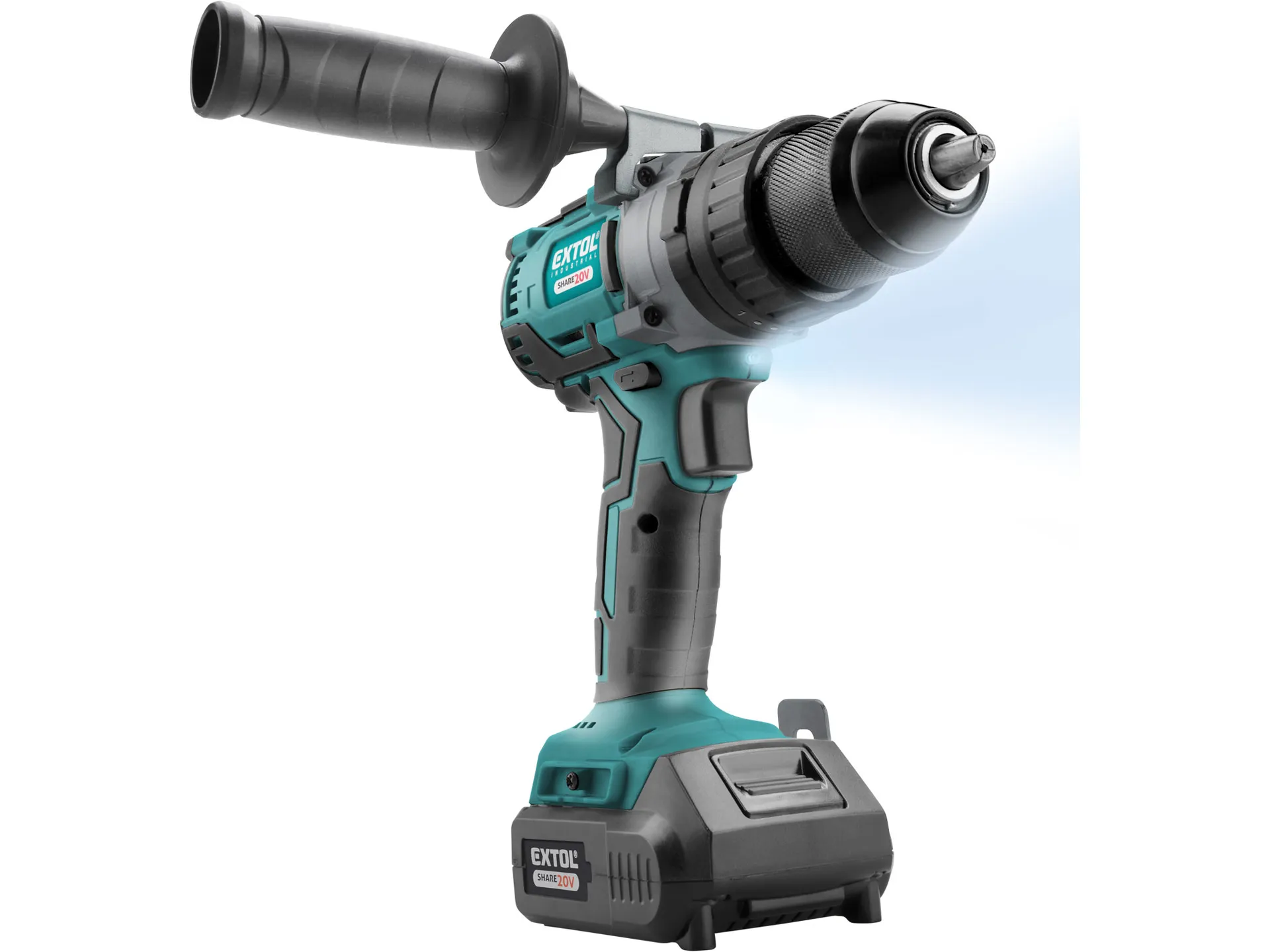 Vrtací šroubovák aku s příklepem share20v, brushless, 20v li-ion, 2ah EXTOL INDUSTRIAL 8791800