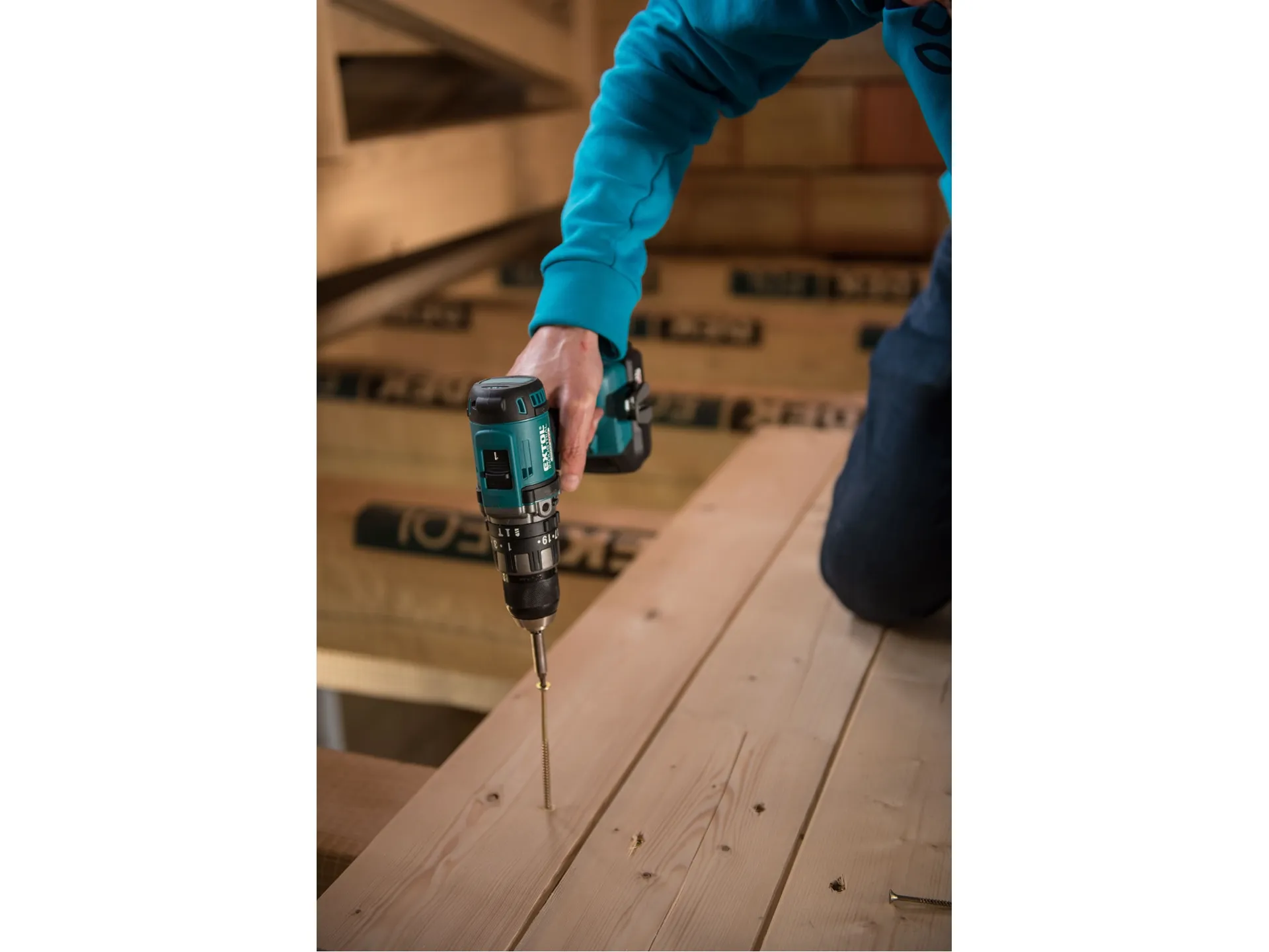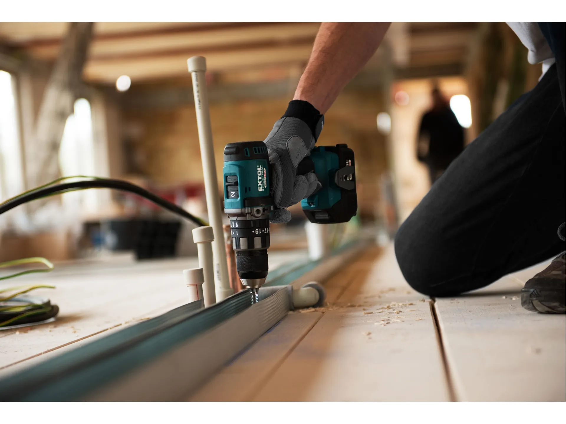 - Lehký a výkonný dvourychlostní vrtací aku šroubovák s příklepem Vám poskytuje vysoký vrtací výkon při vrtání do široké škály materiálů – ocel, kovy, dřevo, plast, ale s příklepem také do zdiva. Je určen pro náročné práce a díky svému příjemnému designu se s ním velmi dobře pracuje i při dlouhodobém používání. Vrtačka je poháněná nejmodernějším „brushless" motorem. Tento nový typ motoru má vyšší životnost, je výkonnější a má menší spotřebu el. energie než klasické motory s uhlíkovými kartáči. Celokovová převodovka s 5ozubenými kolečky je speciálně navržena pro vysoký kroutící moment a zajišťuje bezchybný chod i při vysoké zátěži. Vrtáky se upínají do kvalitního celokovového sklíčidla s aretací. Díky plynulému nastavení momentů, lze využít celý rozsah stupnice a nejen vyznačených 20 stupňů. Vrtačka má 3 režimy práce: vrtání, šroubování a vrtání s příklepem. Mechanický příklep je vynikající pro vrtání do tvrdších materiálů. Integrovaná LED svítilna umístněná na spodní části rukojeti osvětluje pracovní prostor a pro zlepšení orientace v tmavých prostorech má zpožděné vypnutí. Pro běžnou práci dostačují jeden nebo dva 2000mAh akumulátory, které můžete rychle nabít v rychlonabíječce, pro náročnější nebo delší práci doporučujeme větší akumulátory s kapacitou 4000–8000mAh. Akumulátor lze použít ve všech typech nářadí řady EXTOL SHARE20V. Díky použité Li-ion technologii je ho možné kdykoliv dobíjet, aniž by se tím snižovala jeho kapacita. Li-ion akumulátor ztrácí energii vlivem samovybíjení velmi pomalu a vydrží dlouho nabitý a připravený k použití.