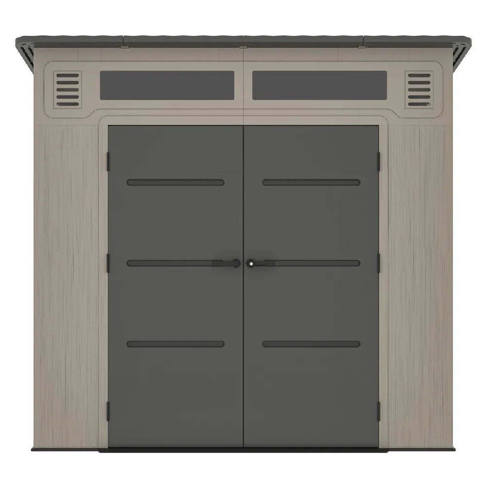 - Součástí domku je pevná plastová podlaha, která chrání interiér před vlhkostí, vodou a blátem a umožňuje bezpečné uložení i těžších strojů a nářadí. O zdravé vnitřní klima se stará ventilační systém na dvou stranách větrací otvory jsou navíc vybaveny sítí proti hmyzu, která zajišťuje účinné větrání bez nežádoucích návštěvníků.