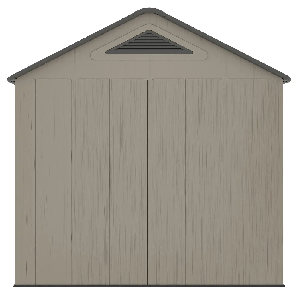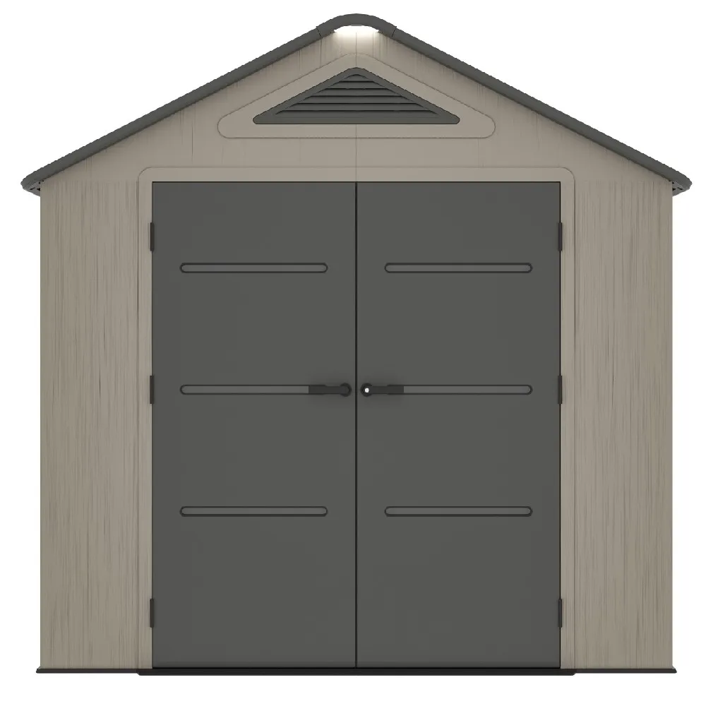 - Součástí domku je také pevná plastová podlaha, která chrání před vlhkostí, blátem a umožňuje bezpečné uložení i těžších předmětů. O optimální klima uvnitř se stará ventilační systém na dvou stranách, který zajišťuje účinnou cirkulaci vzduchu.