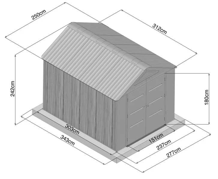 - Moderní sedlová (apex) střecha přispívá k rychlému odvodu dešťové vody a zároveň zvyšuje nosnost celé konstrukce. V základní výbavě nechybí dvě praktické police a pět plastových háčků, díky nimž budete mít veškeré nářadí vždy přehledně uspořádané.