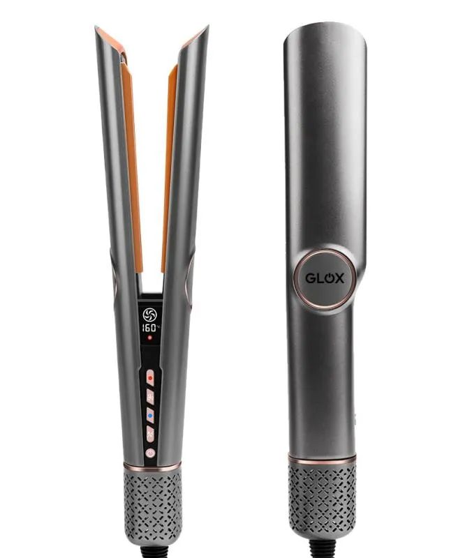 - Žehlička využívá lineární, řízený proud vzduchu, který současně vyhlazuje a suší vaše vlasy.
