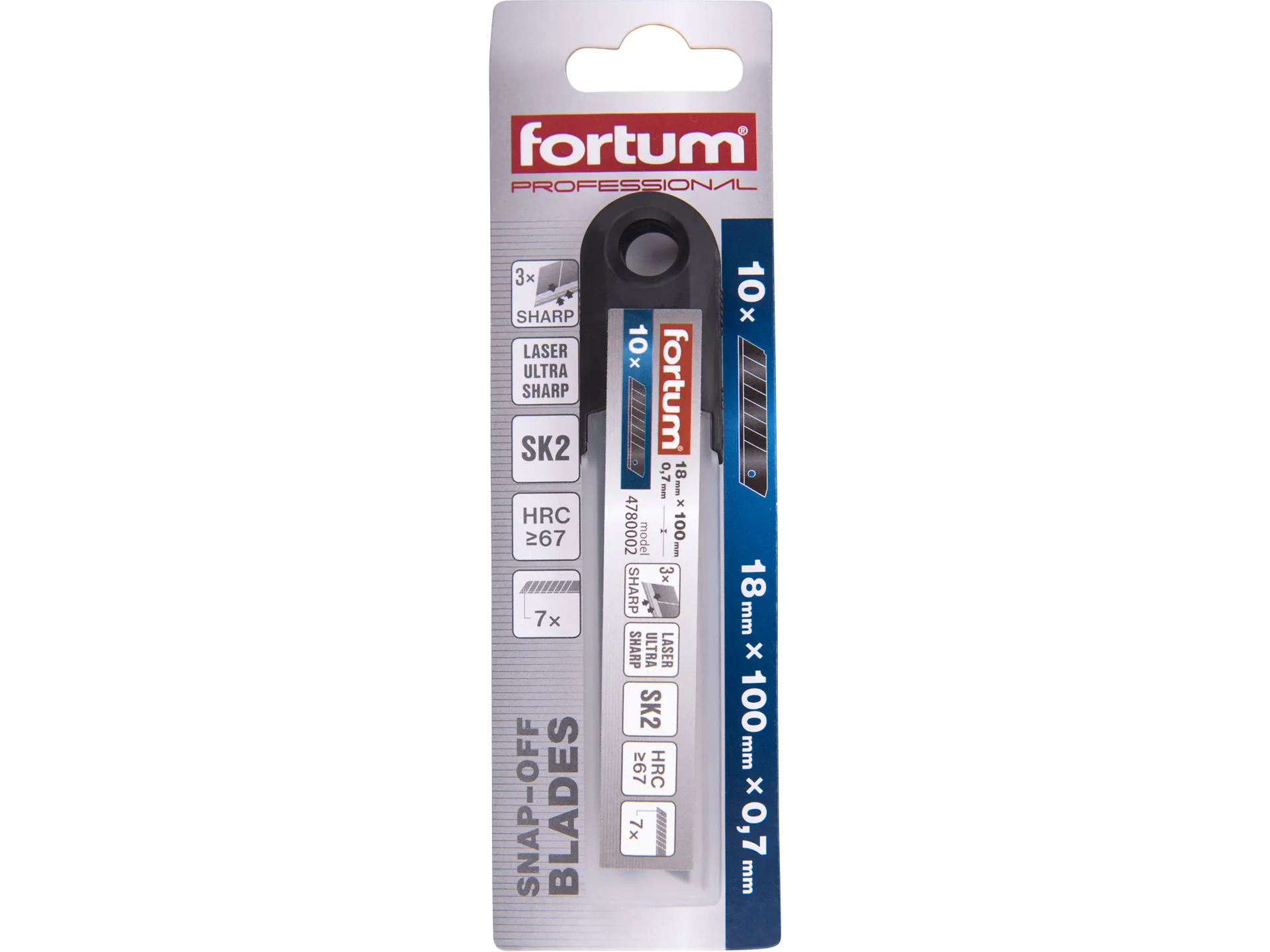 Zrušeno! nahrazeno výrobkem 4780007, břity ulamovací do nože 10ks, 18mm(tl.0,7mm/7s), sk2 FORTUM 4780002