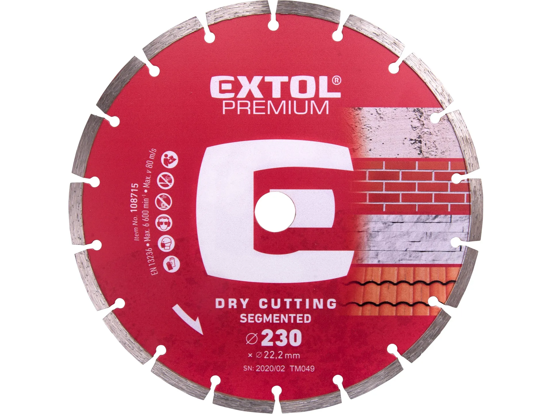 Zrušeno! nahrazeno výrobkem 8803015 kotouč diamantový řezný segmentový - suché řezání, o 230x22,2x2,8mm EXTOL PREMIUM 108715