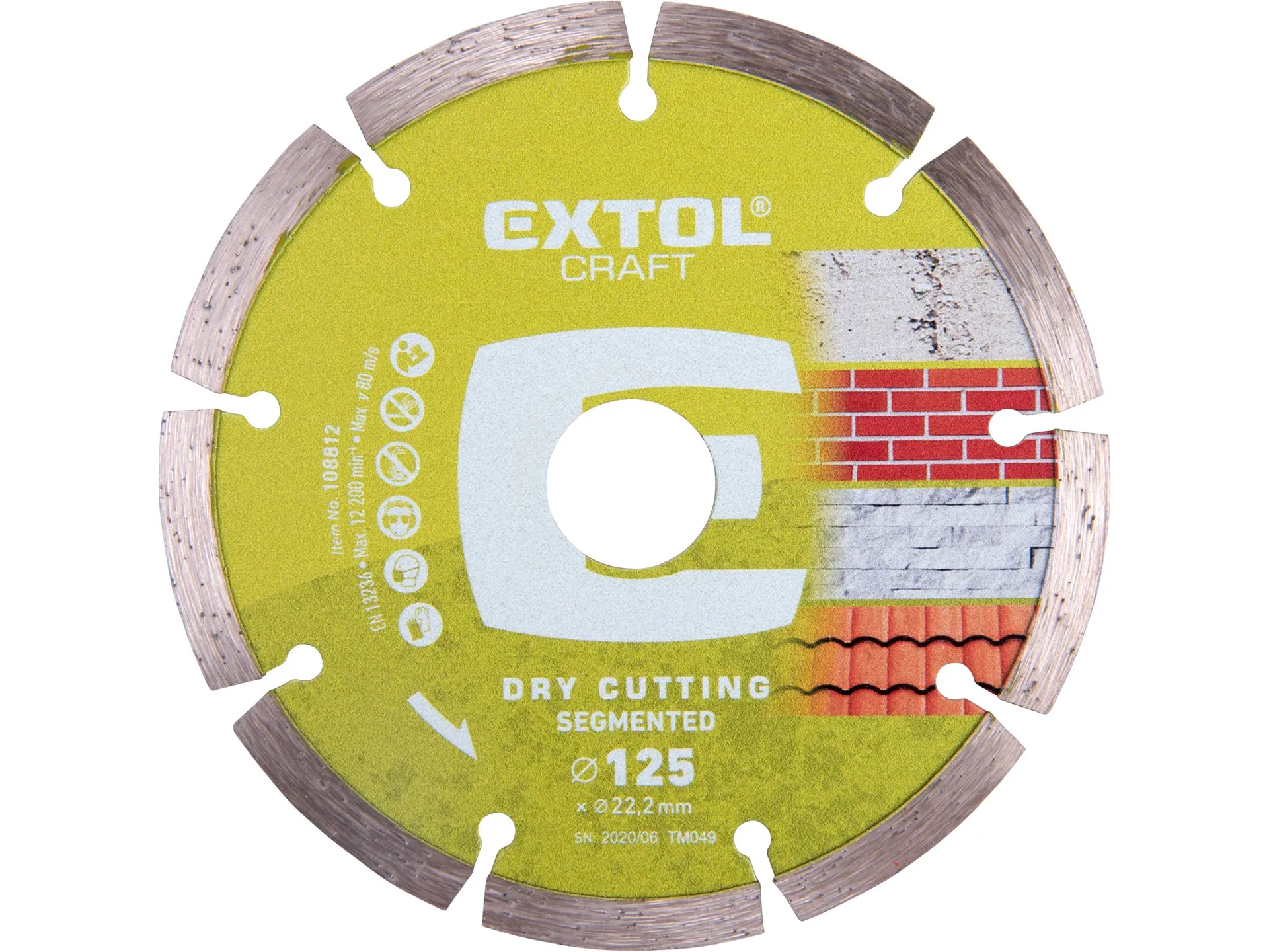 Zrušeno! nahrazeno výrobkem 903032 kotouč diamantový řezný segmentový - suché řezání, o 125x22,2x2mm EXTOL CRAFT 108812