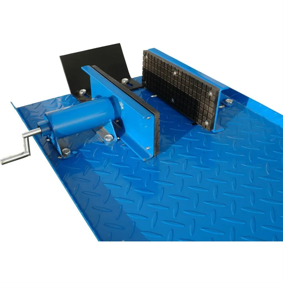 - (-> maximální nosnost: 360 kg).Pohodlné zvedání/plynulé spouštění plošiny pomocí pedálů (2), bezpečná fixace předního kola motocyklu prostřednictvím pohyblivé upínací svorky (-> max